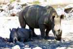 | Due to the heat that day (which made lousy conditions for photographing the animals) the rhinos took to the water and stayed there. | ![]() ![]() ![]() |