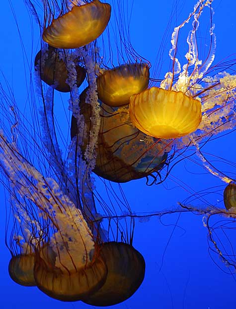 | The deep bay Jellyfish exhibit was a highlight of the trip. Lit in such a way that almost any image came out just great, these creatures were a lot of fun to watch. | |