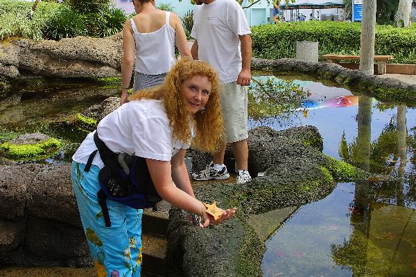 | I couldn't get my beautiful (but timid) wife to get aggressive enough to pet the dolphins, although she did pick up a starfish. | ![]() ![]() ![]() |